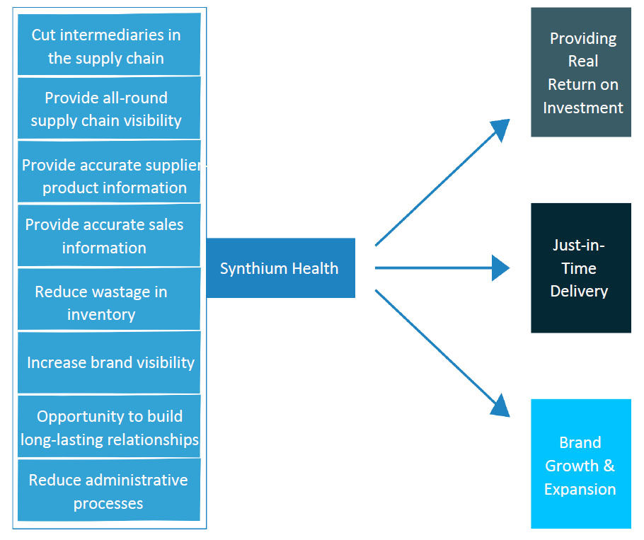 Synthium Health provides a unique networking marketplace that brings together healthcare providers and suppliers for simplified, efficient and cost-effective exchanges that build businesses. Using advanced technologies and the best practices, Synthium Health’s automated platform creates efficiencies and maximizes revenues, all the way through the supply chain process. It empowers suppliers to extend their reach, sell faster, cut down on operational costs and deliver consistent buyer experiences across all touchpoints. Synthium Health also plans to collaborate with leading logistics partners to further serve the industry.